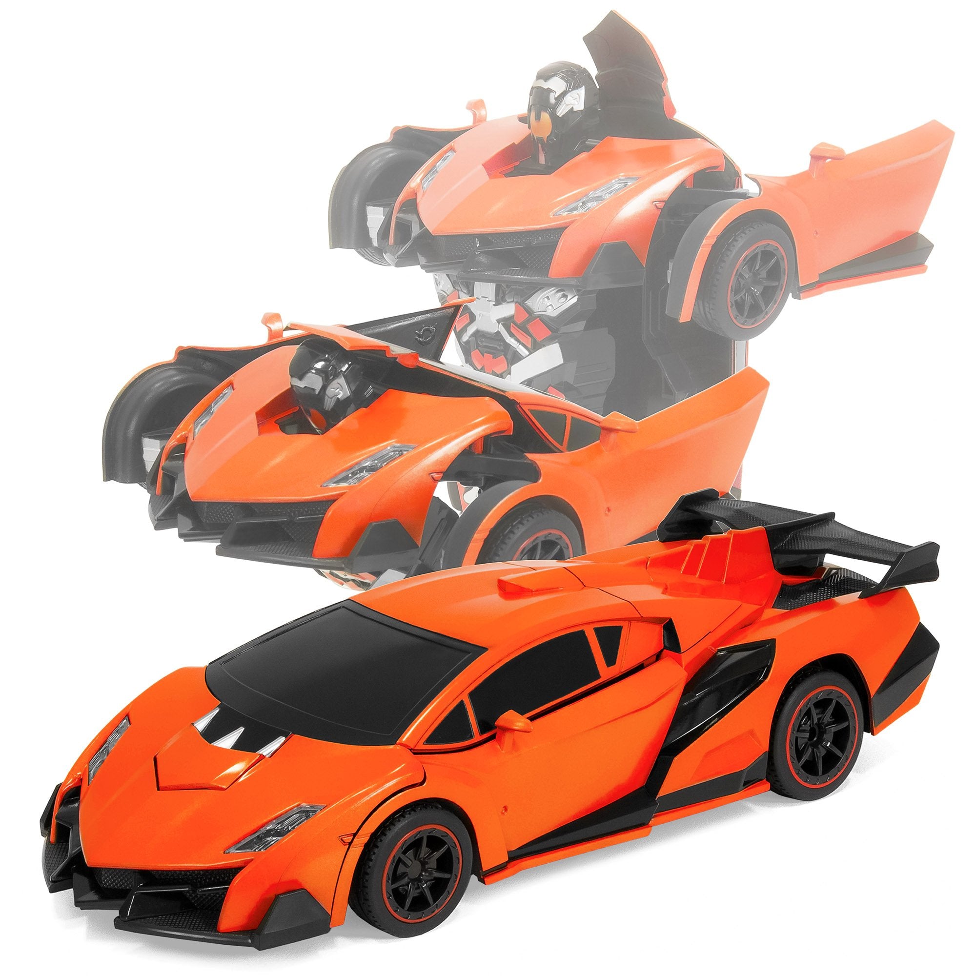 • ONE-BUTTON TRANSFORMATION: 2-in-1 RC toy gives kids the best of both worlds; simply press and hold a button to switch from a slick sports car to a powerful robot in just seconds!