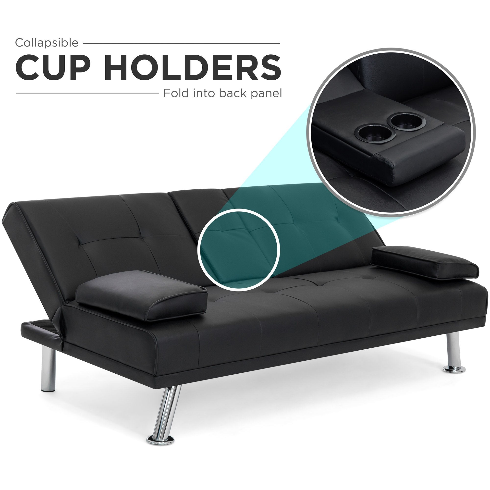 PERFECT FOR GUESTS AND ENTERTAINMENT: The 2-person futon has cupholders and armrests for family movie nights, and it transforms into a guest bed by fully reclining the back and removing the armrest