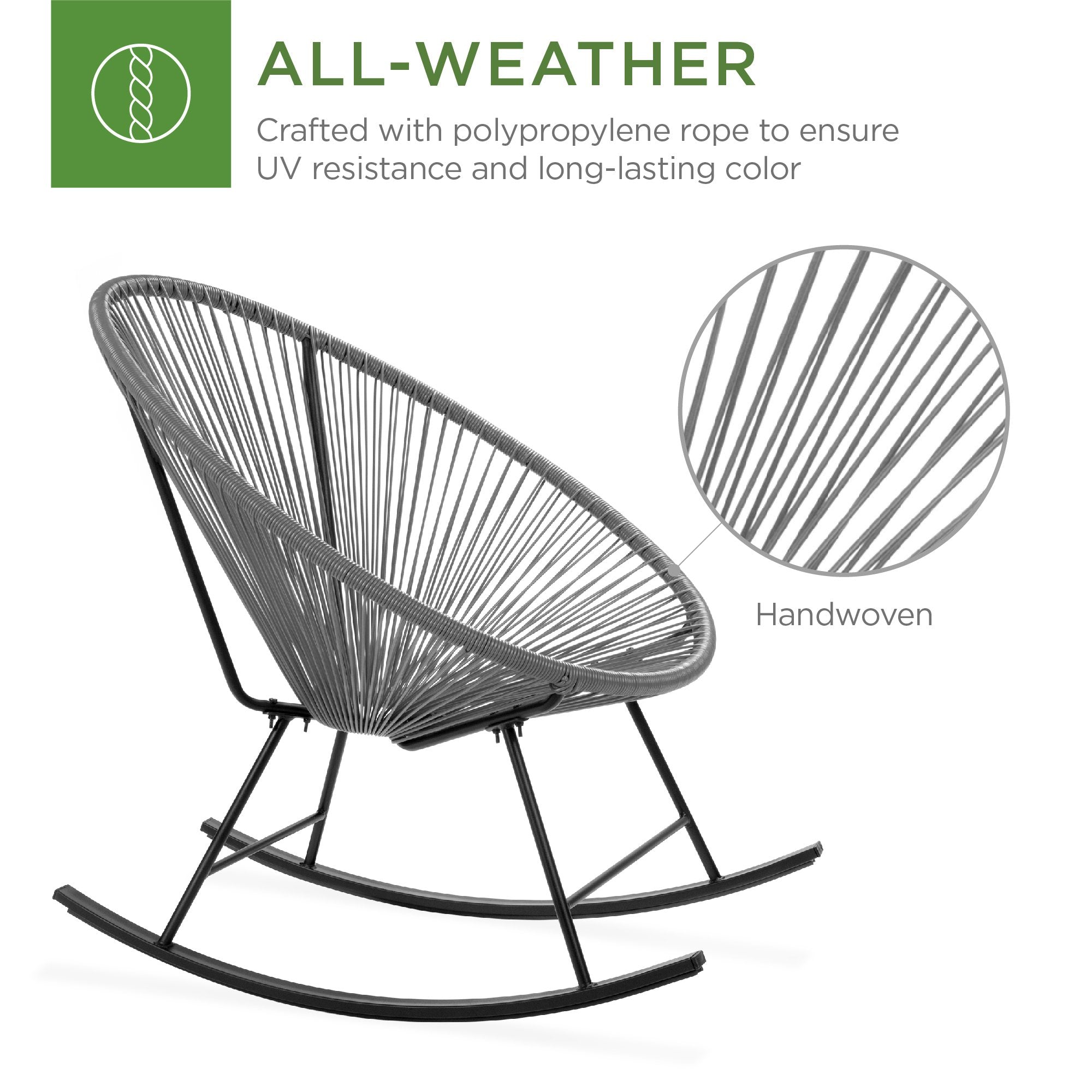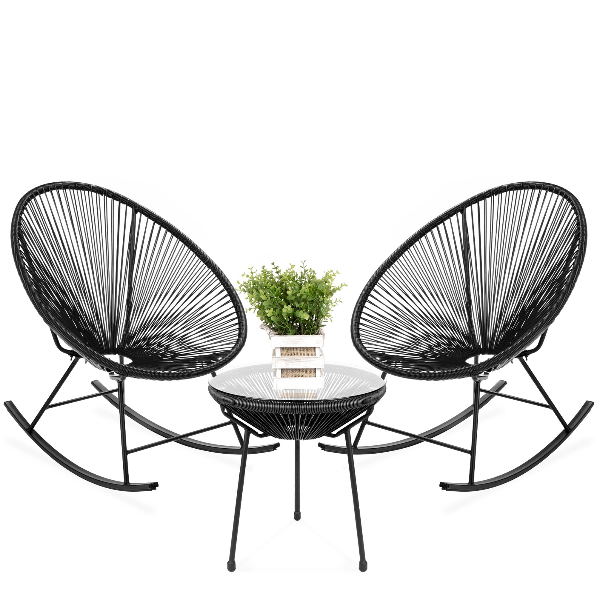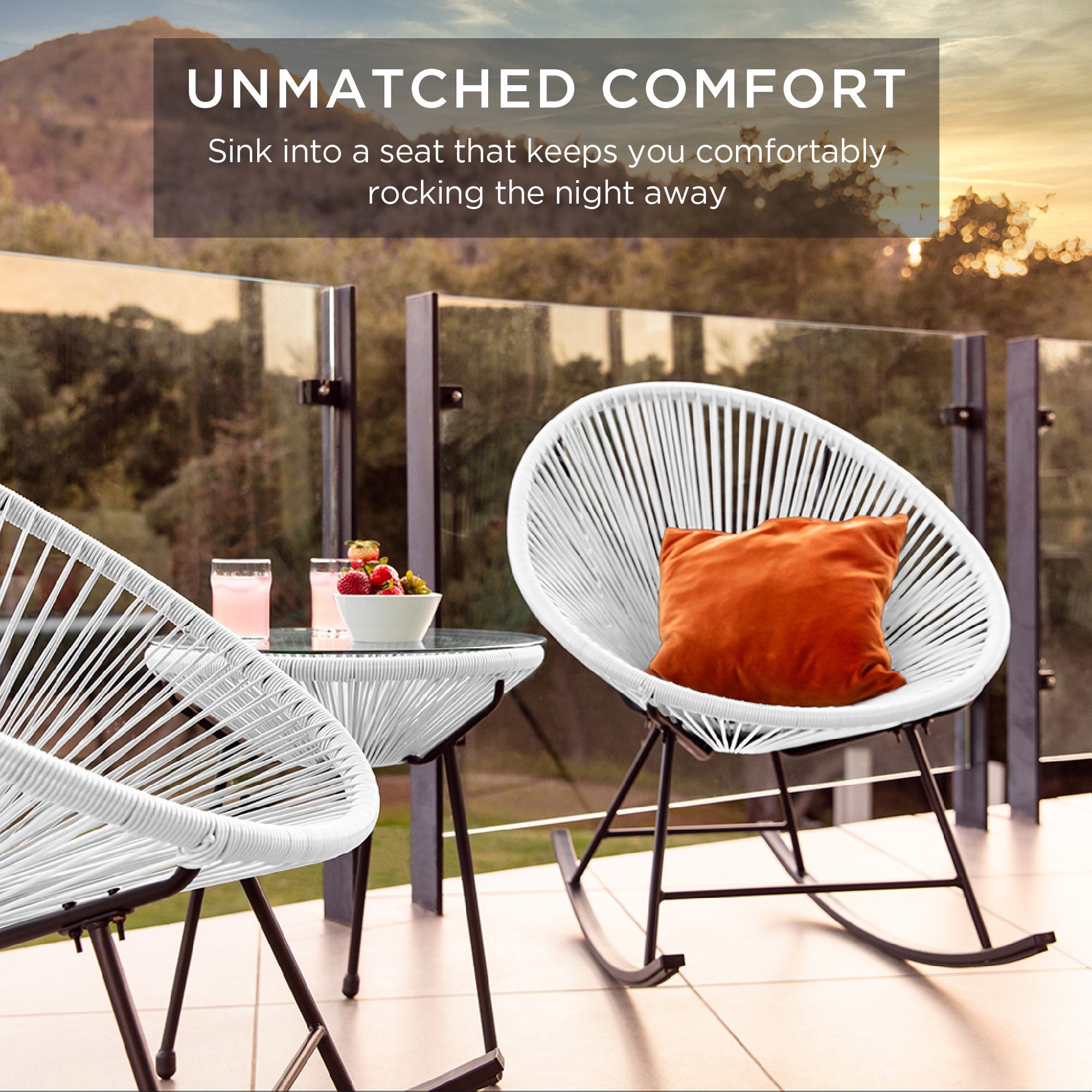 3-Piece Patio Woven Rope Acapulco Rocking Chair Bistro Set