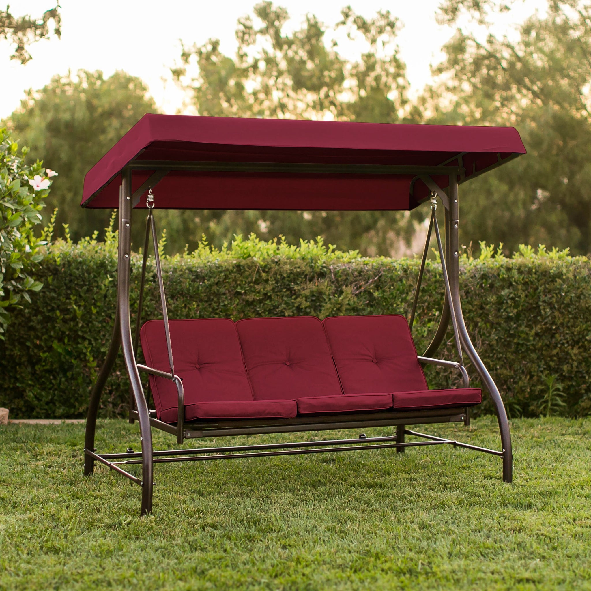 • ADJUSTABLE CANOPY: Control full to partial shade with easily adjustable canopy to provide comfort for the three seats