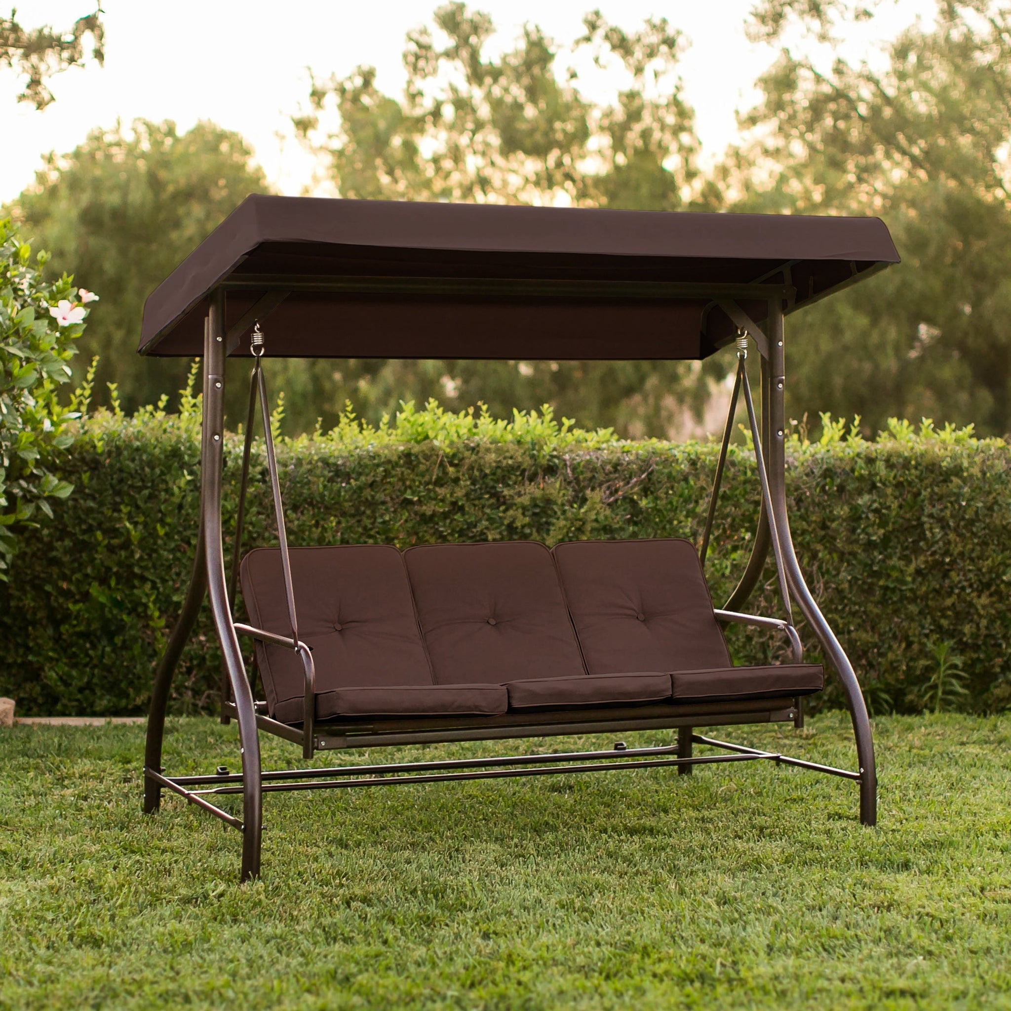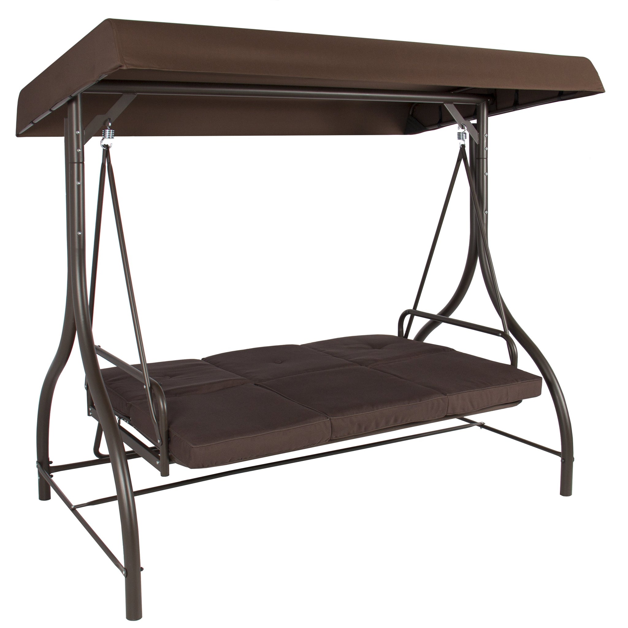 3-Seat Outdoor Canopy Swing Glider Furniture w/ Convertible Flatbed Backrest