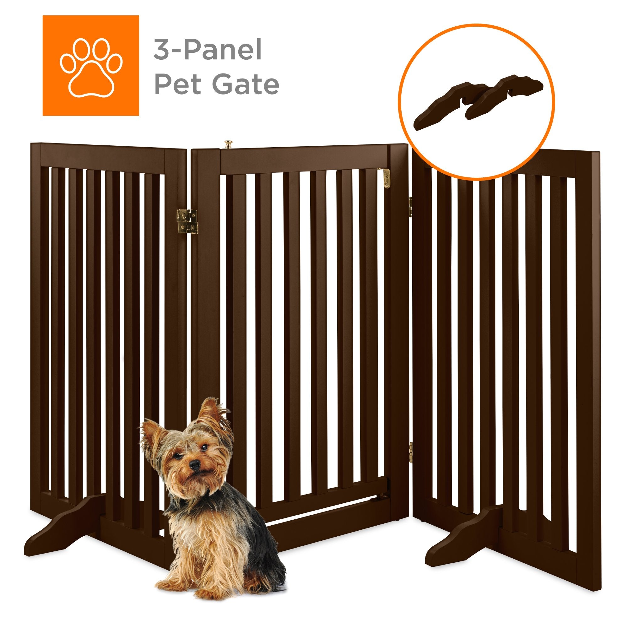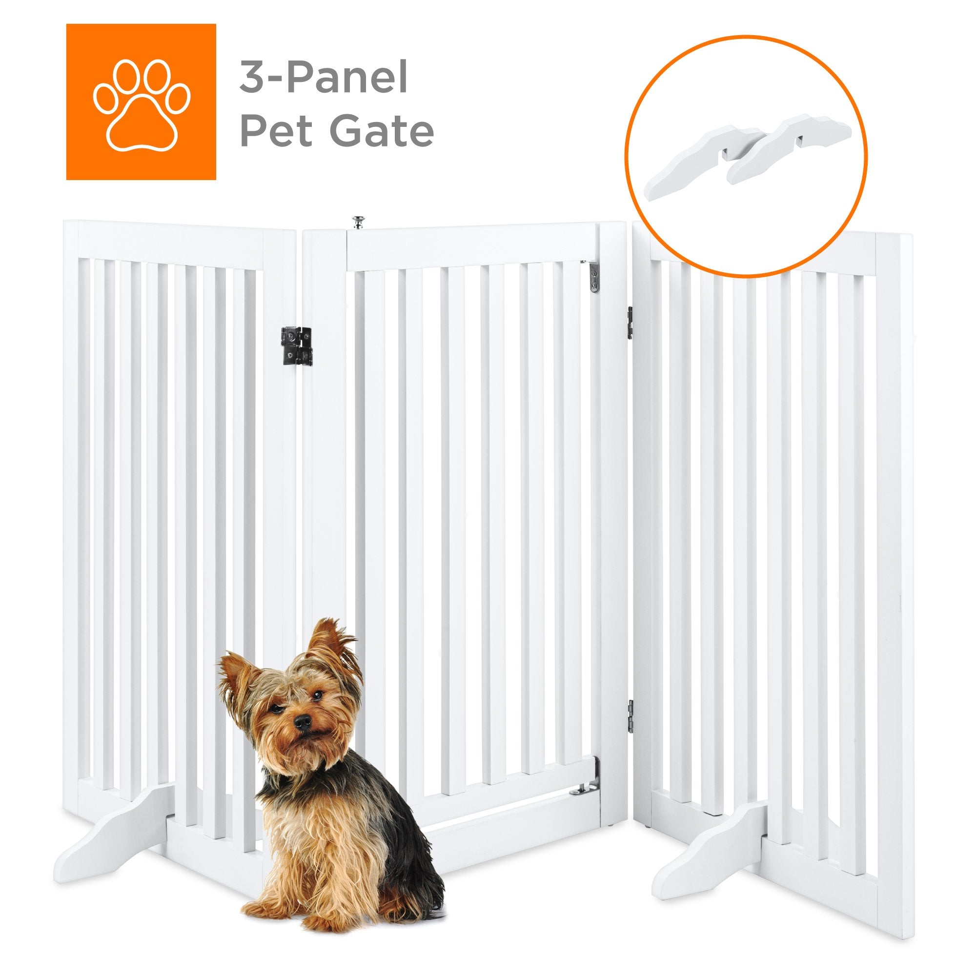 31.5in 3-Panel Freestanding Wooden Pet Gate w/ Door, Support Feet