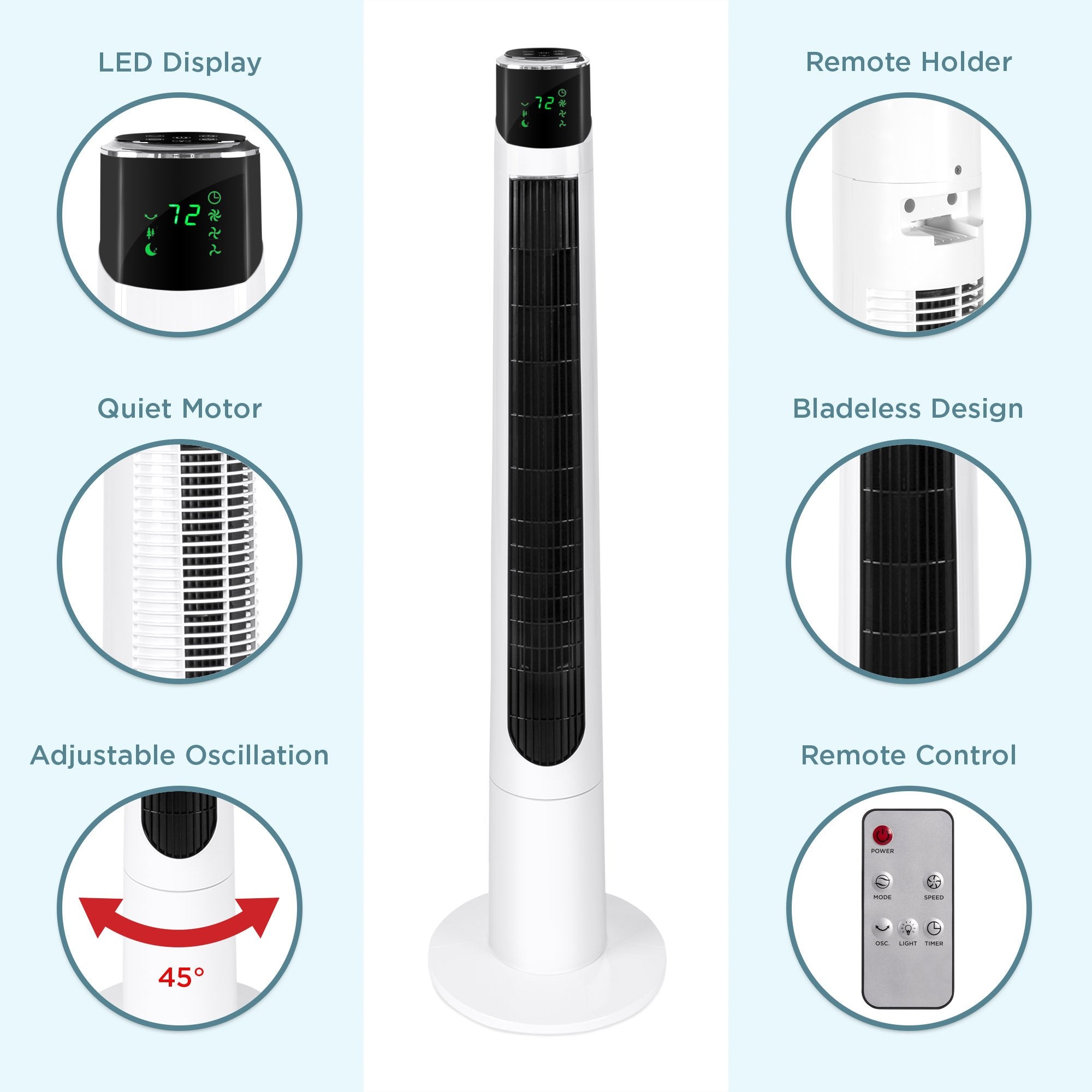 3-SPEED FAN: High-reaching, 47-inch tower fan effortlessly and rapidly cools a wider area in any room, with 3 speeds (High, Medium, Low) and optional 45-degree oscillation for superb air delivery