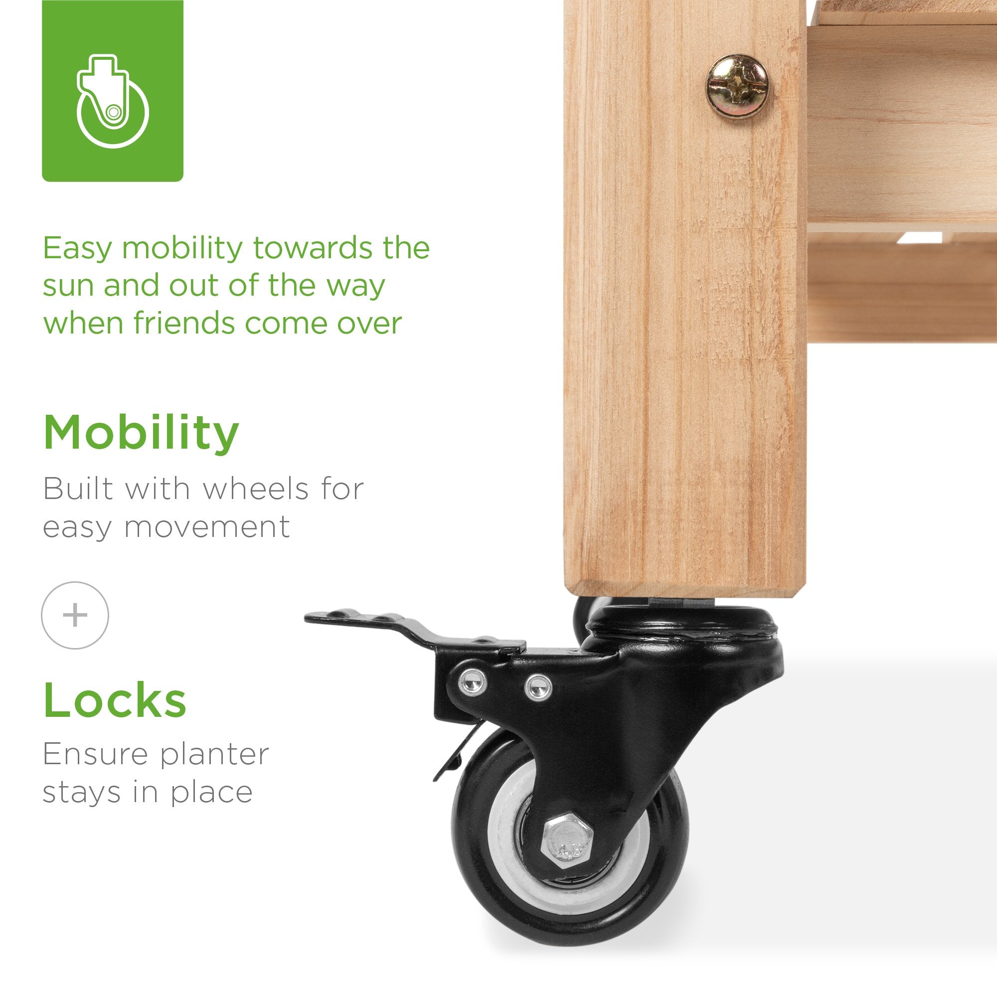EASY MOBILITY: Built with a set of locking wheels to move the planter from place to place and capture the right amounts of sun and shade