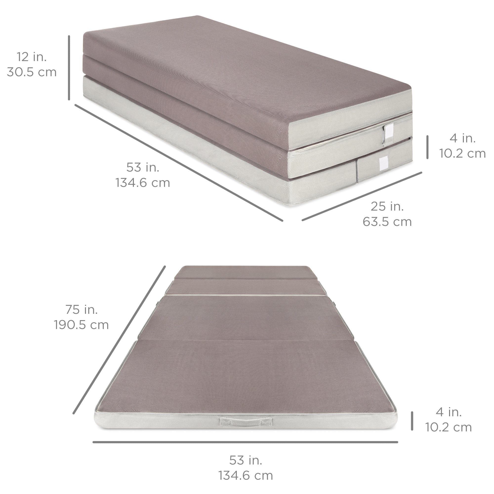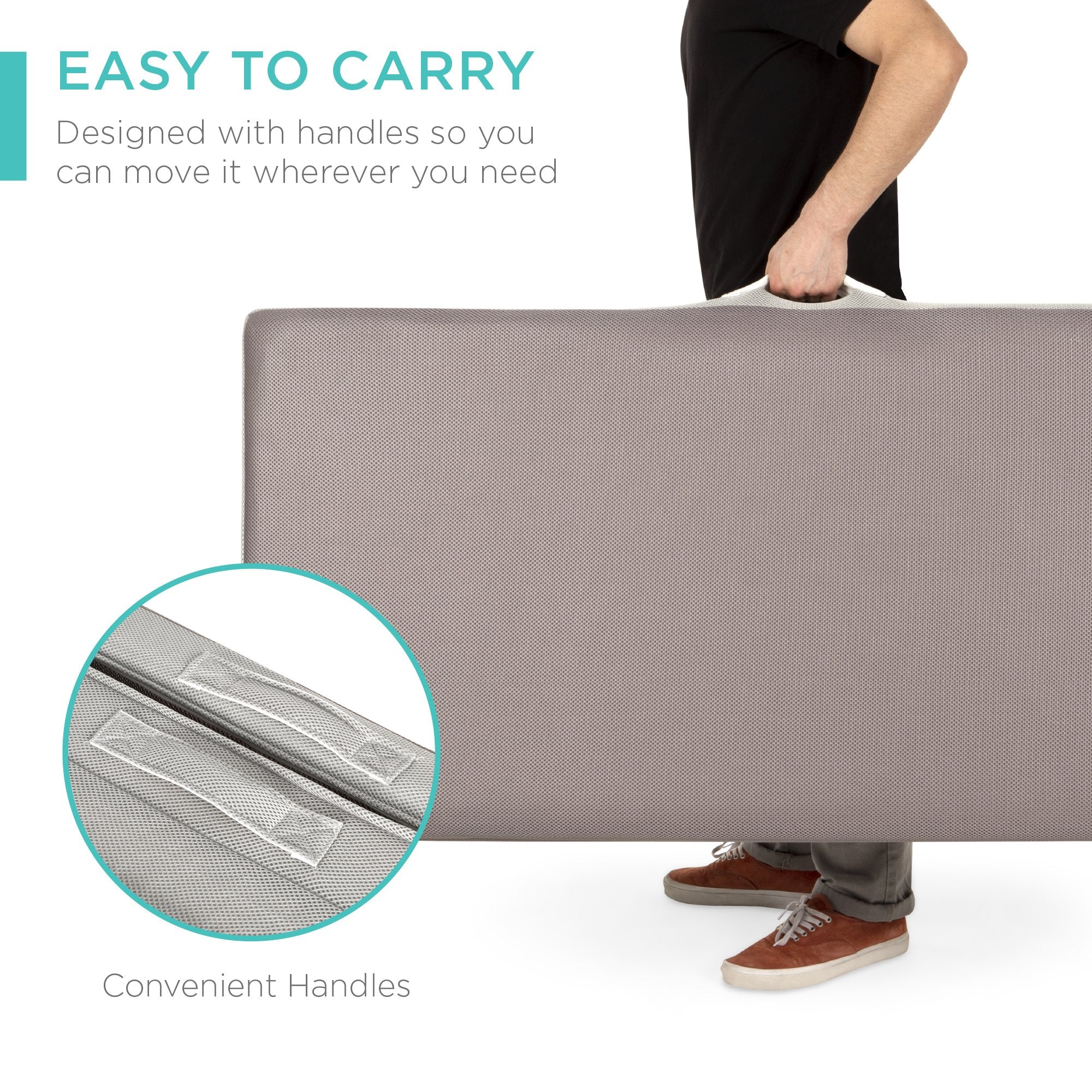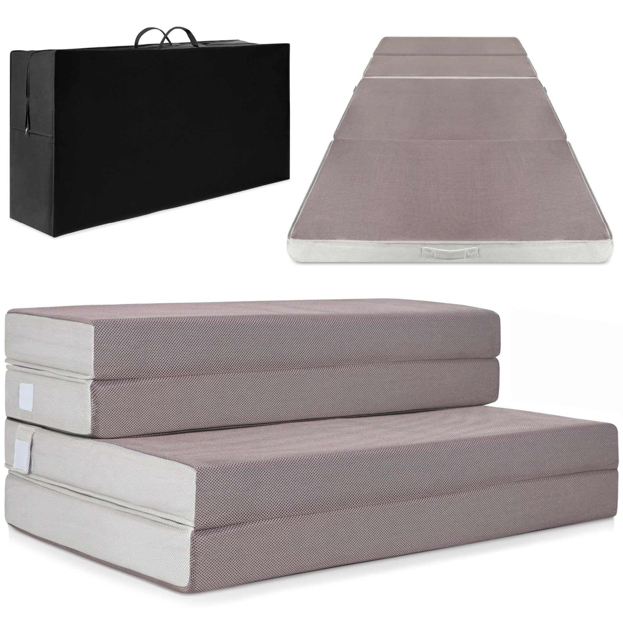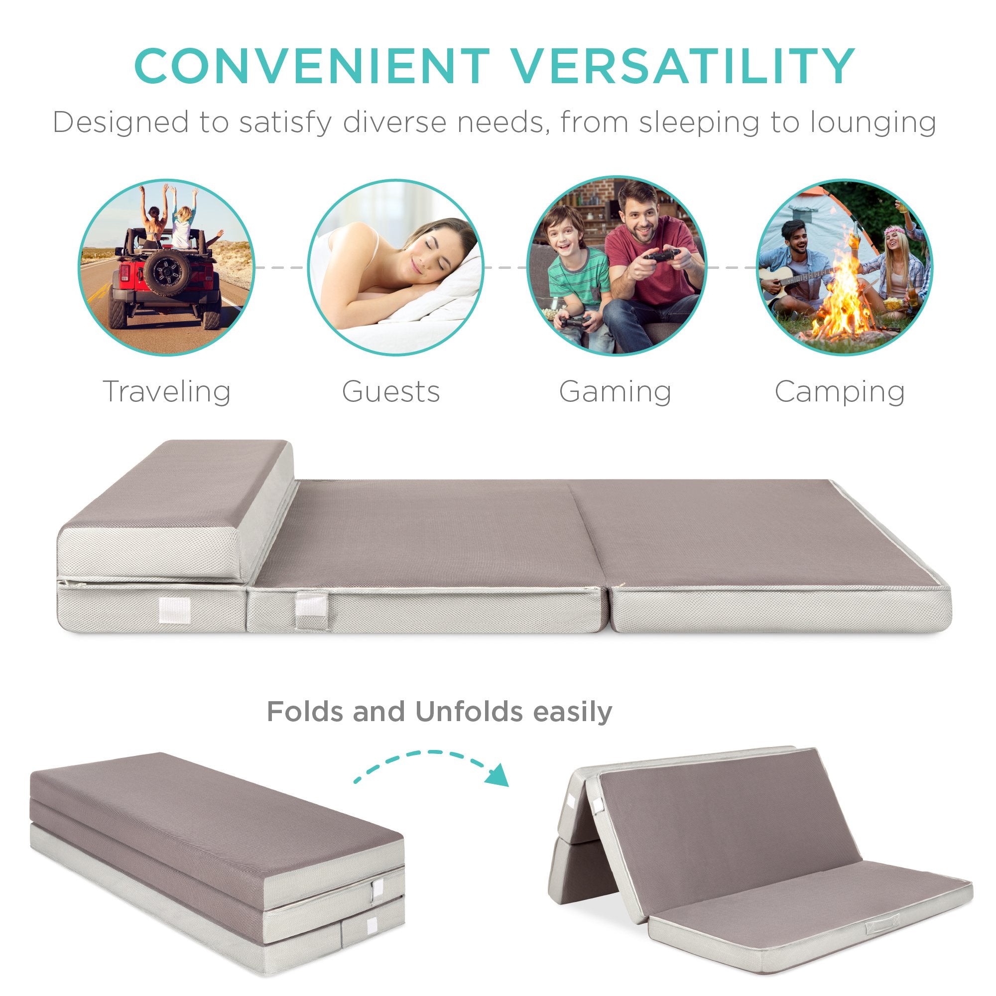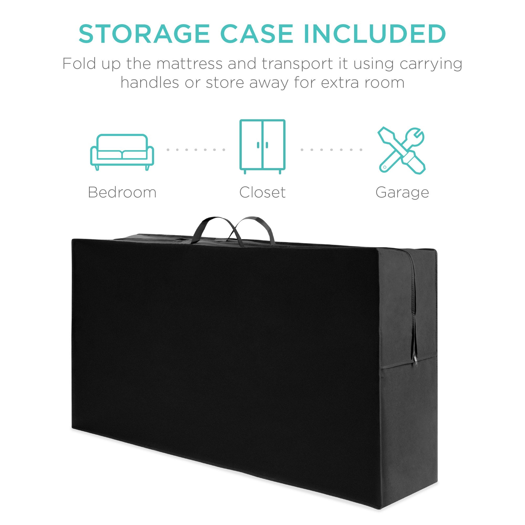 • PORTABLE AND SPACE-SAVING: Simply slip the included carrying case over the portable, tri-fold mattress and zip it up to keep it neat and secure while you travel