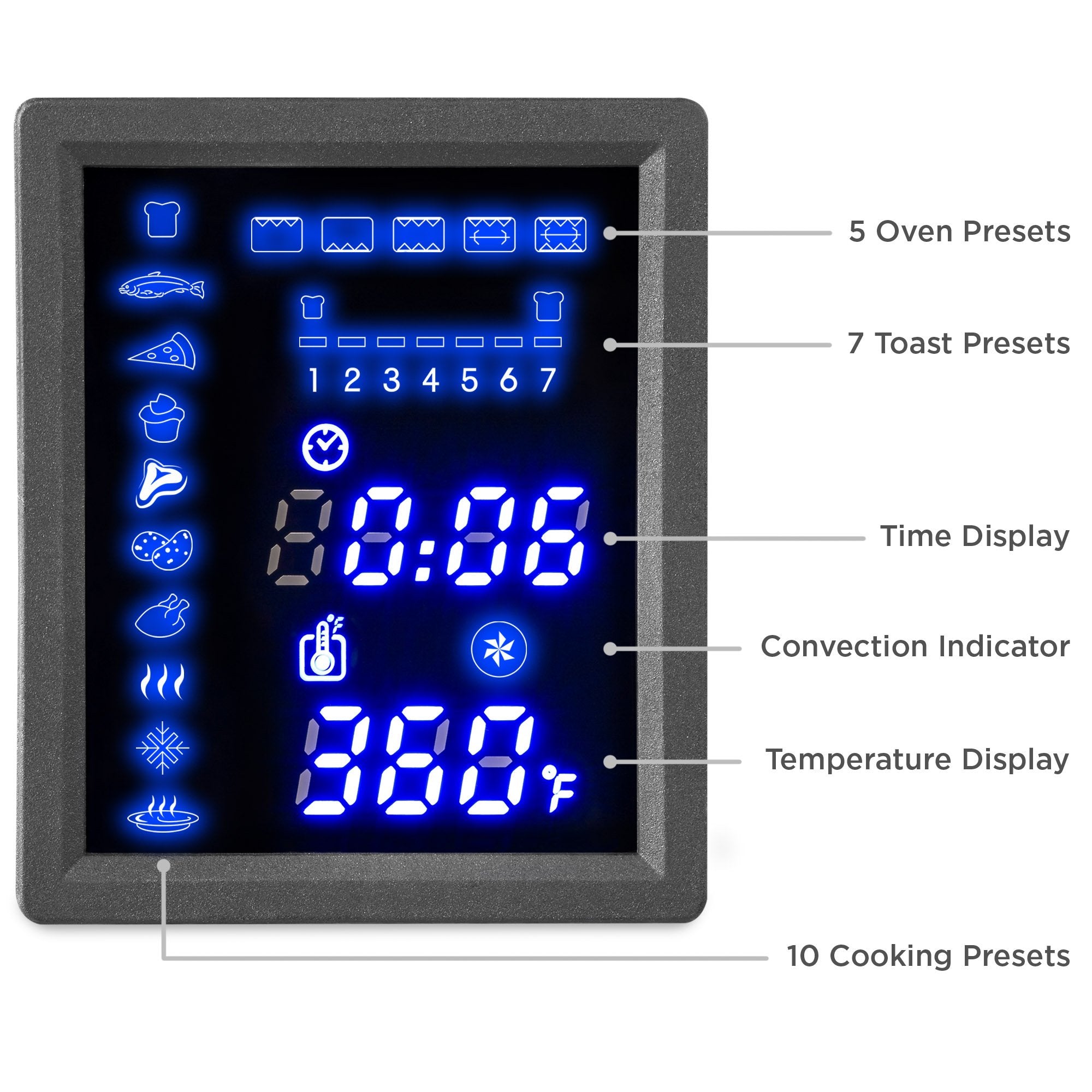 10 PRESET PROGRAMS: Use 10 digital presets including defrost, dehydrate, keep warm, broil, bake, toast (light to dark), roast, and even a rotisserie setting to prepare succulent chicken, lamb, or tender root vegetables