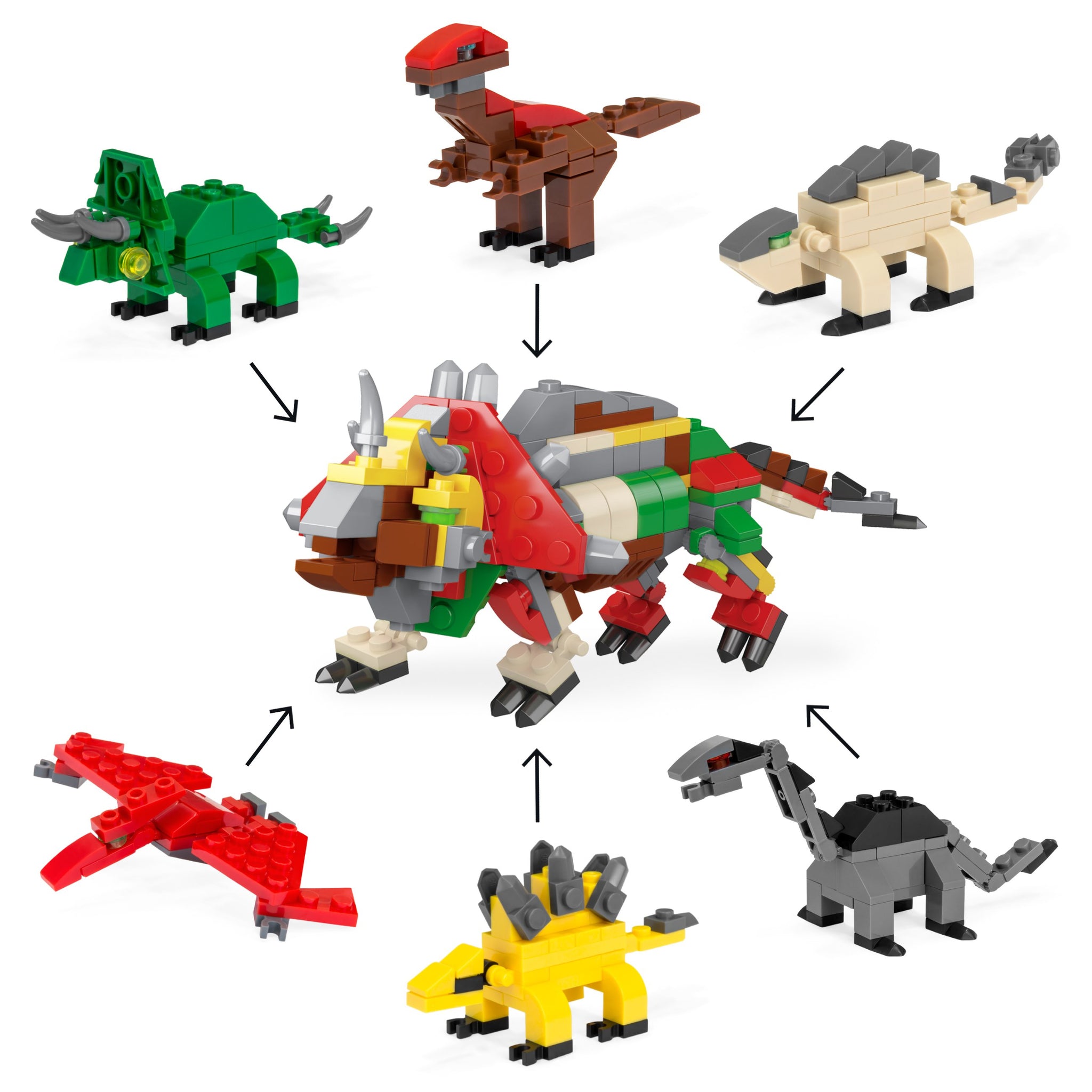 MULTIPLE BUILDING OPTIONS: This 6-in-1 set will spark children's imaginations back to the past, complete with 12 eggs to hatch and build 6 different dinosaurs that can be combined into a Triceratops