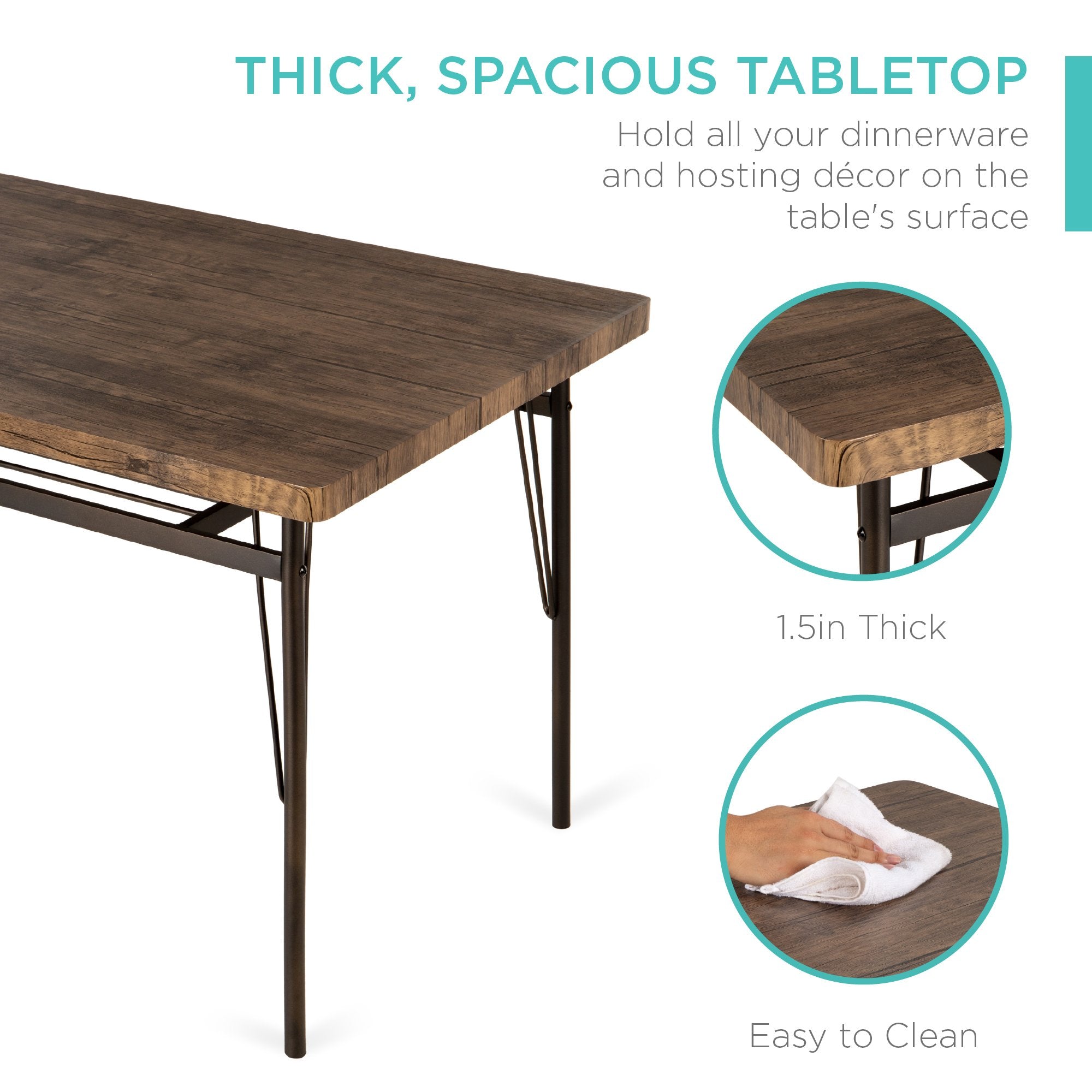 THICK, SPACIOUS TABLETOP: The rectangular, engineered wood tabletop is cut extra thick to make it perfect for eating dinner, working on your laptop, or playing games with friends and family