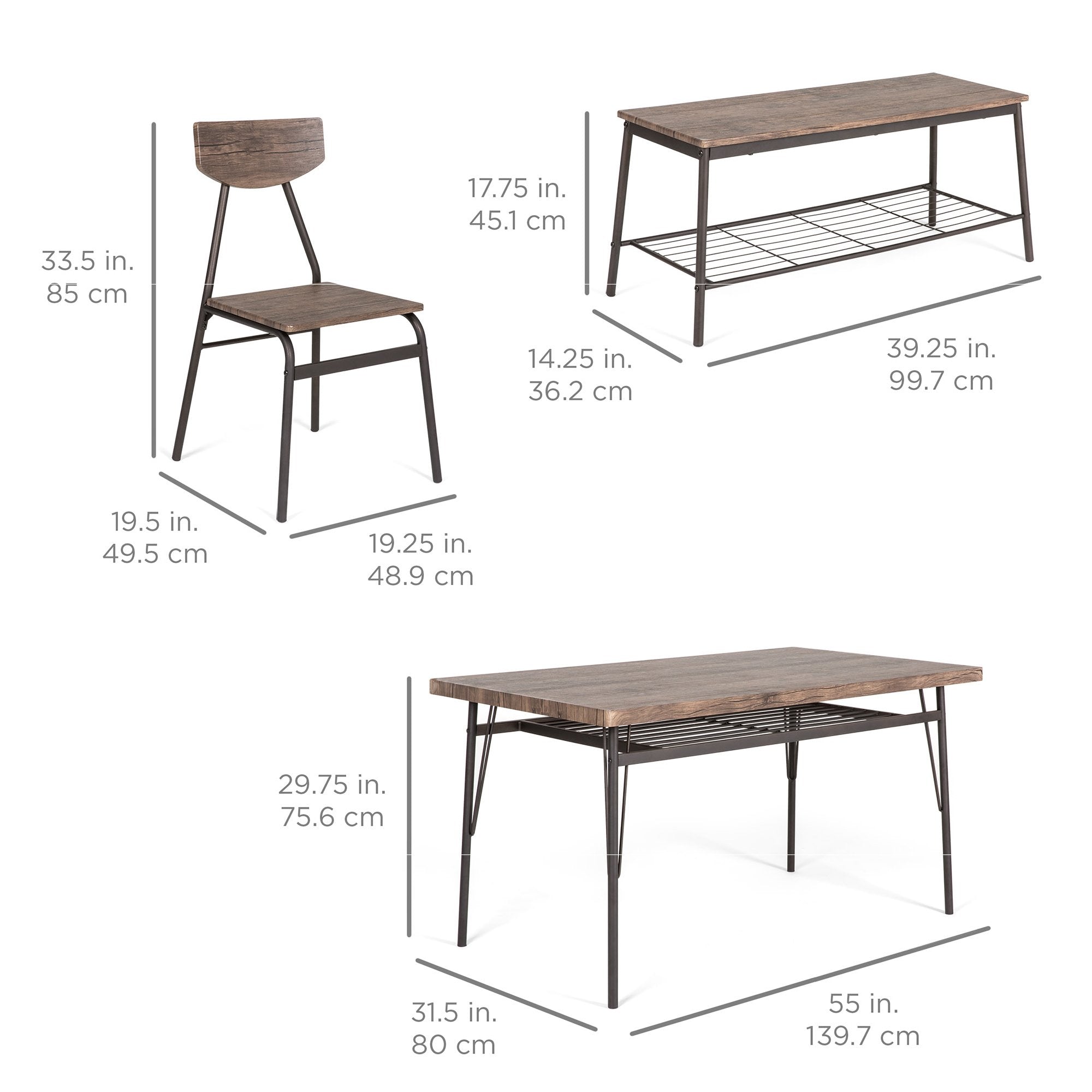 6-Piece Modern Dining Set w/ Storage Racks, Table, Bench, 4 Chairs - 55in