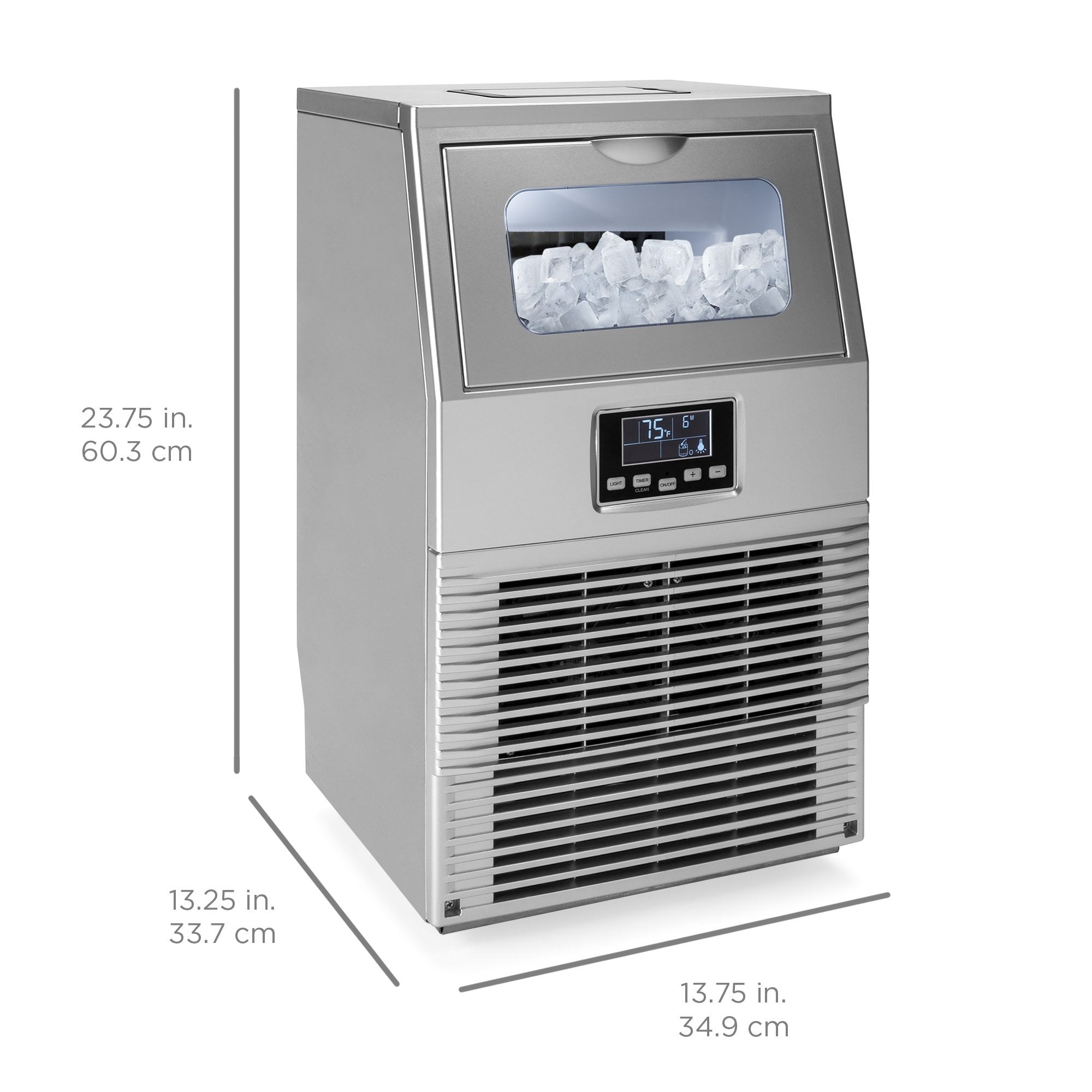 • SAFE & USER-FRIENDLY: ETL-certified machine has a digital LCD screen and easy touch buttons to easily control light, timer, and temperature settings; auto clean function also saves time while ensuring sanitary ice making