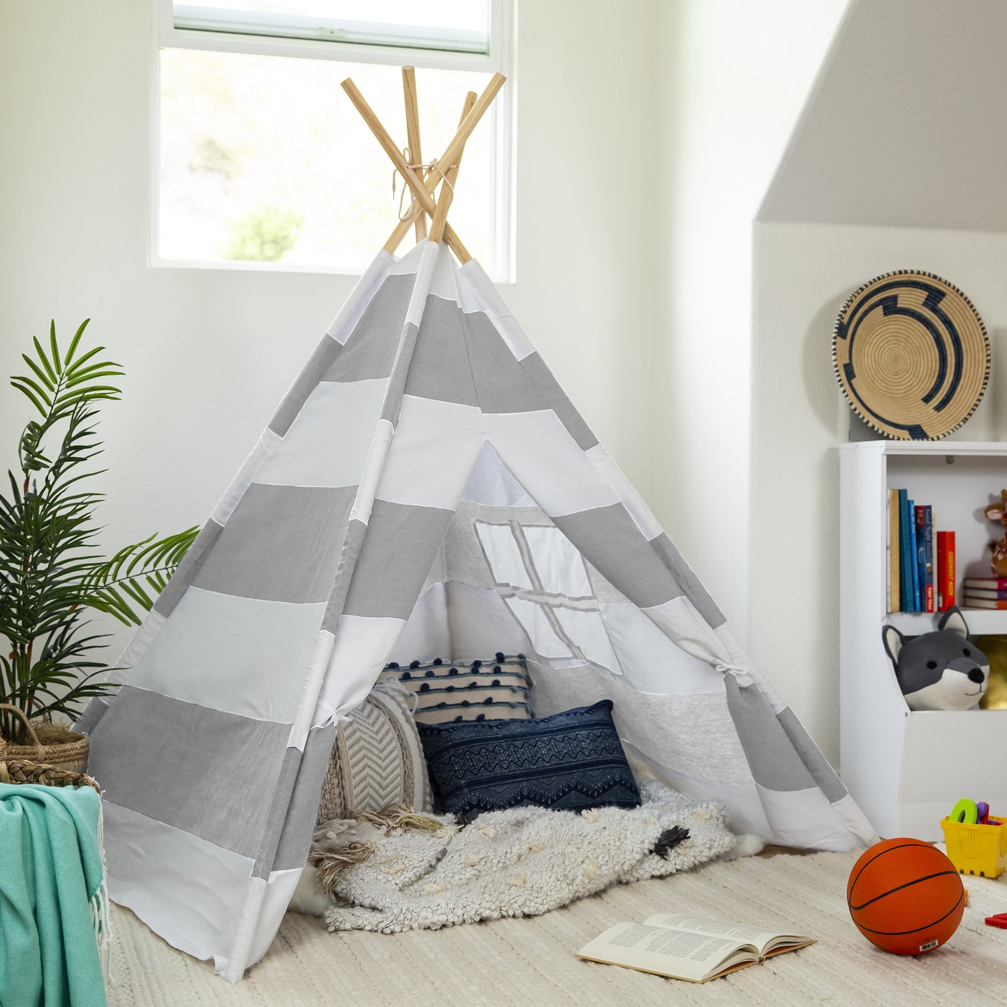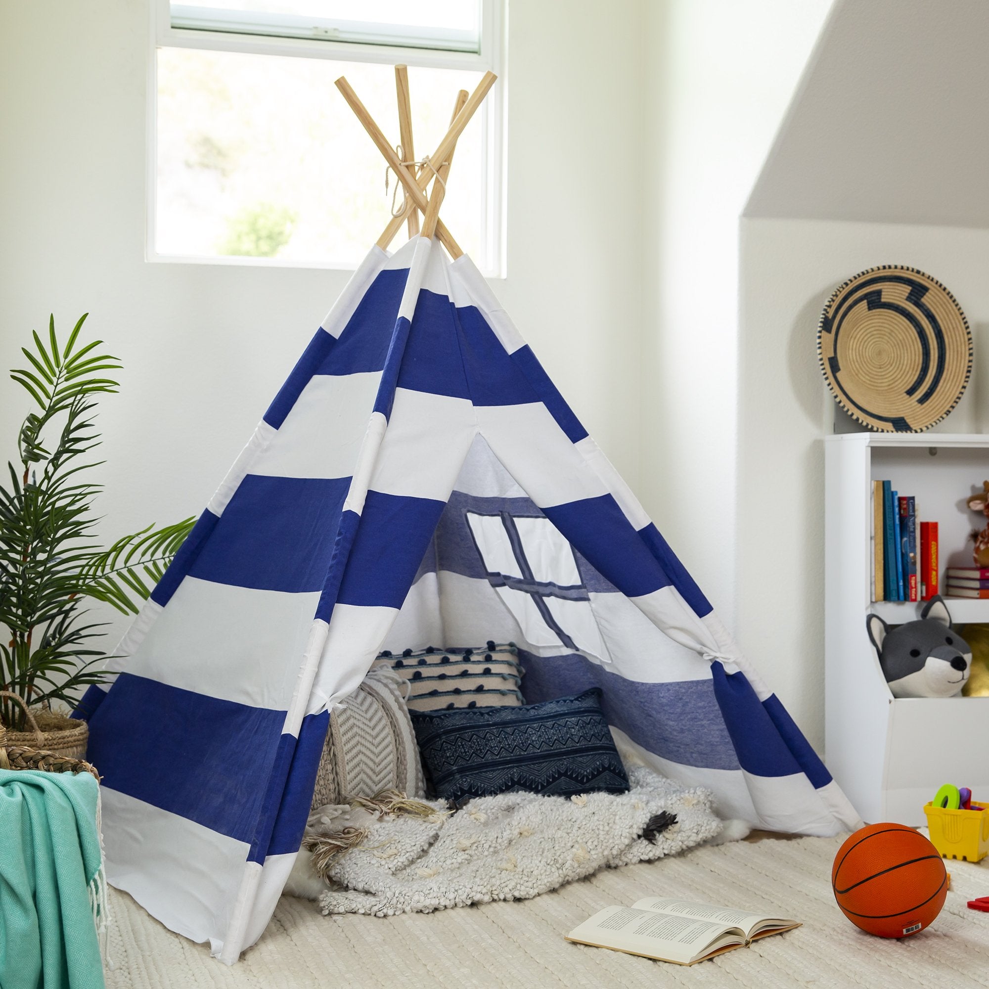 DURABLE COMPOSITION: Machine-washable cotton canvas and sturdy wooden poles create a stable structure that lasts through countless playtimes; OVERALL DIMENSIONS: 57"(L) x 44.5"(W) x 75"(H)