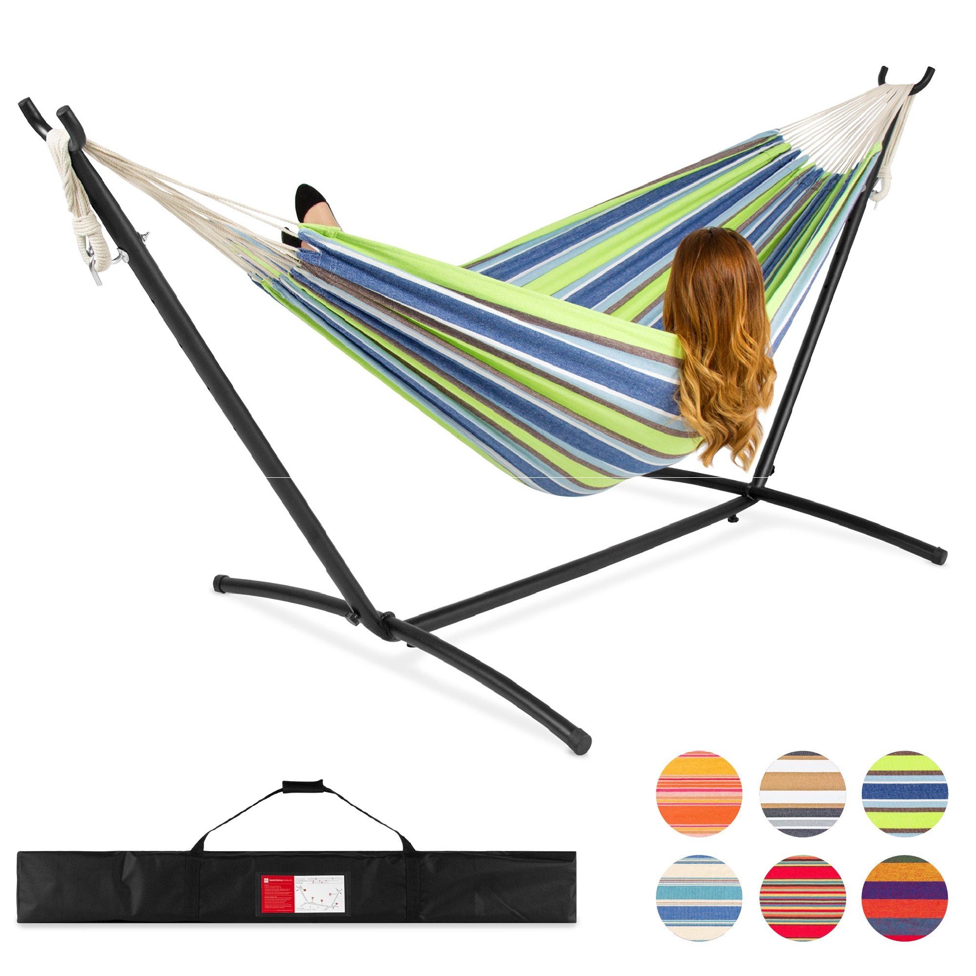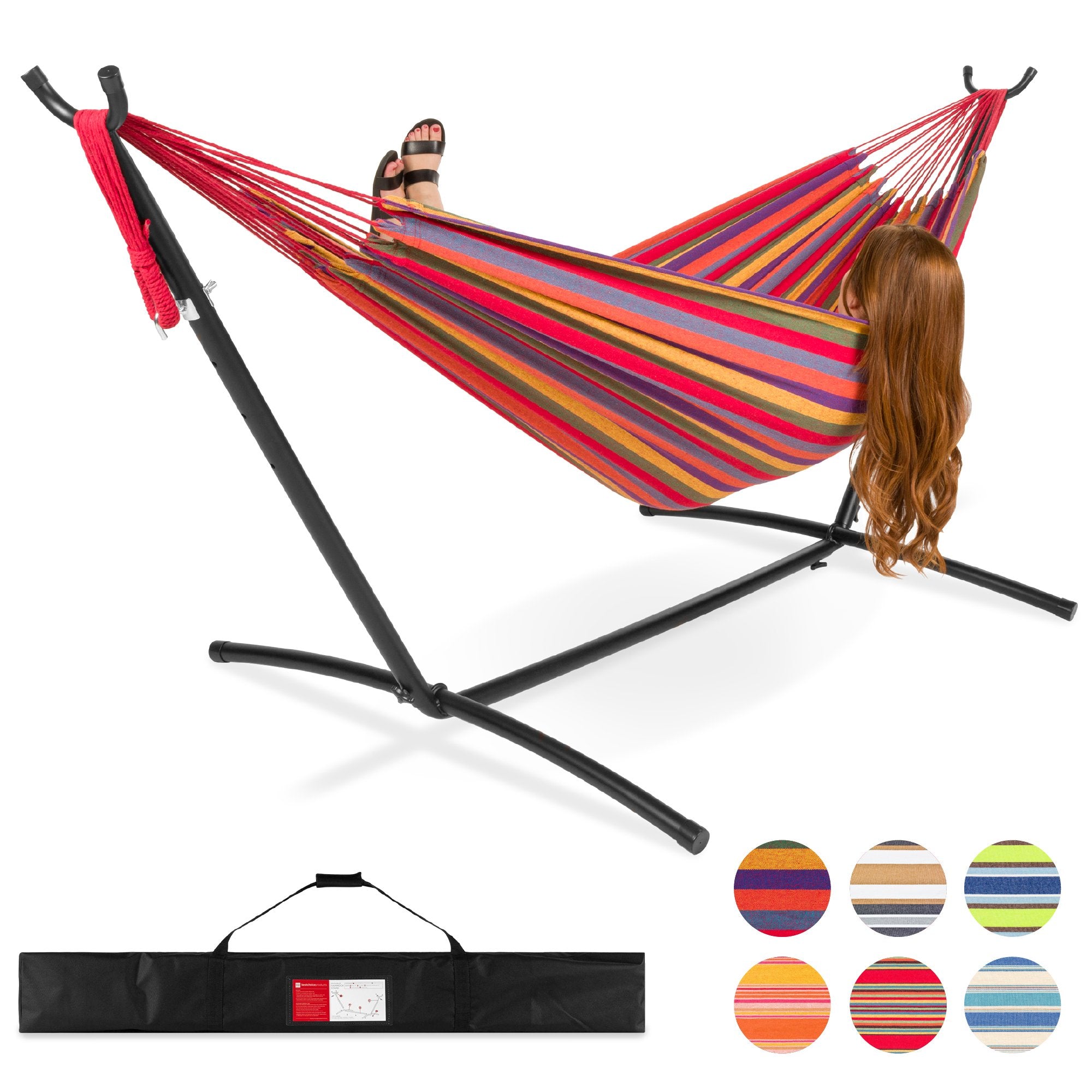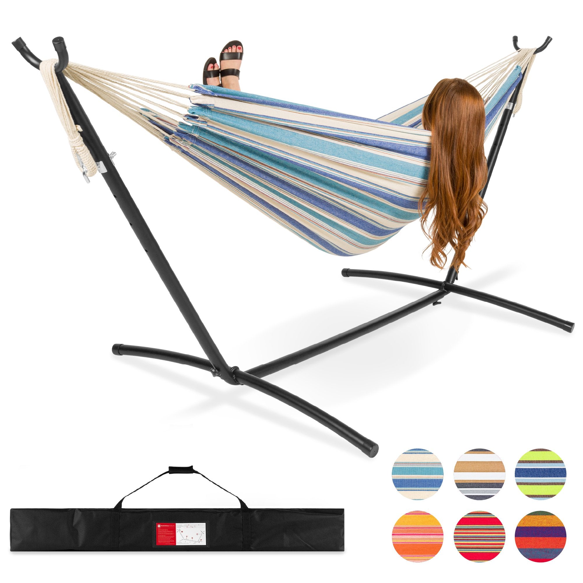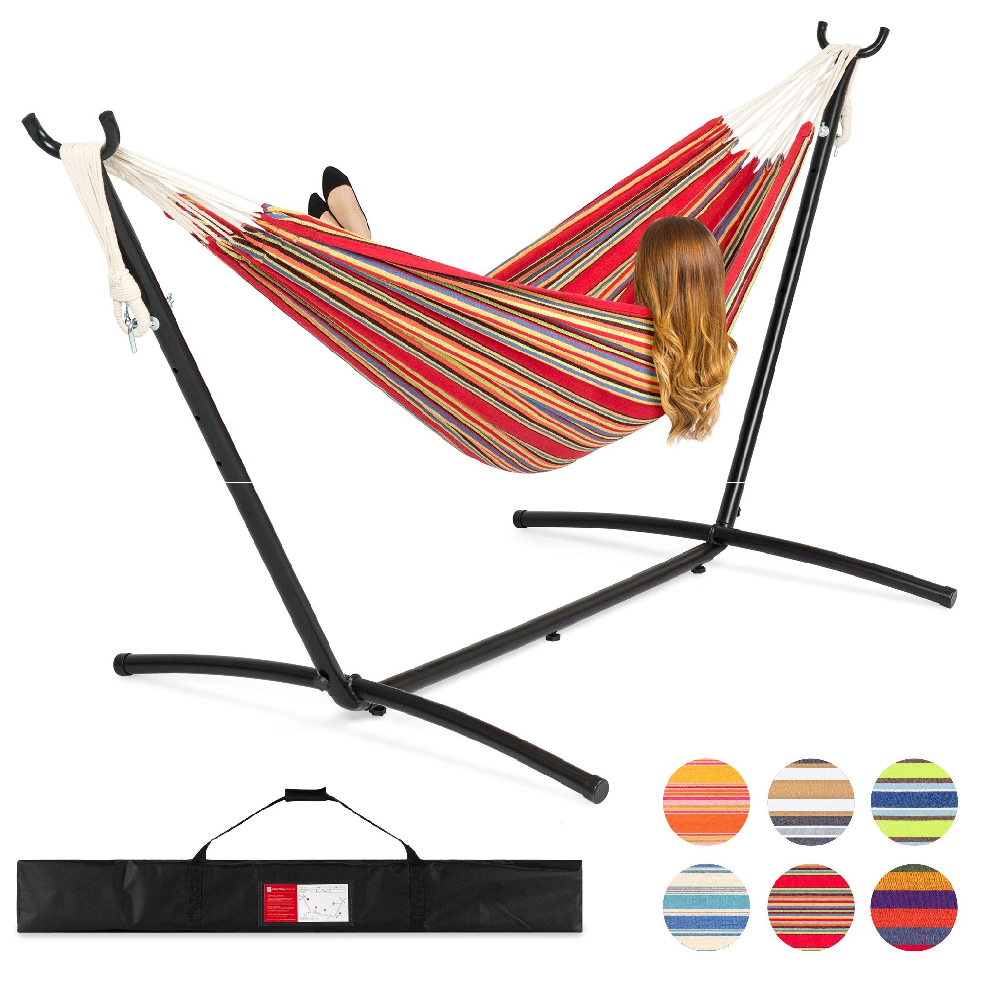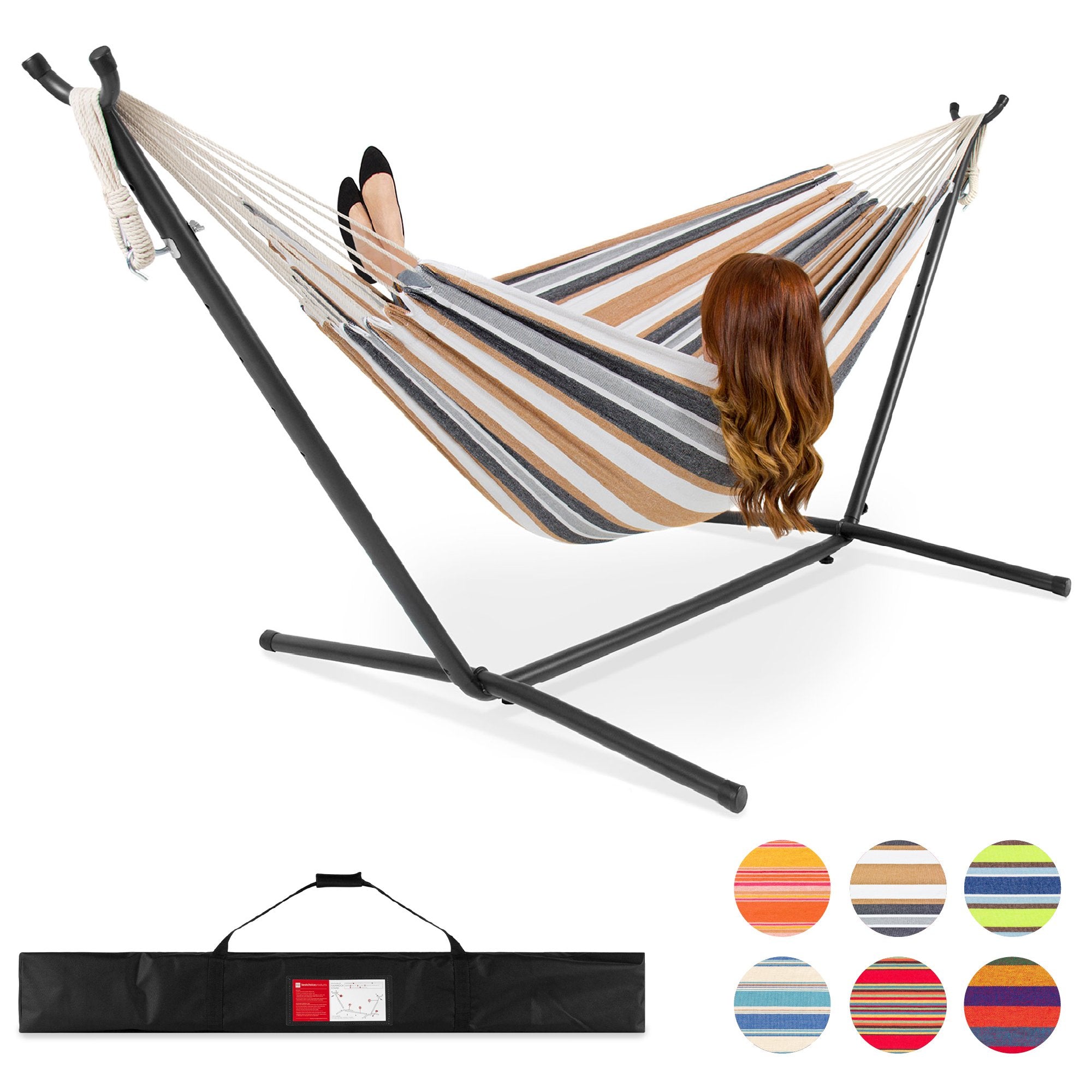 2-Person Brazilian-Style Double Hammock w/ Carrying Bag and Steel Stand