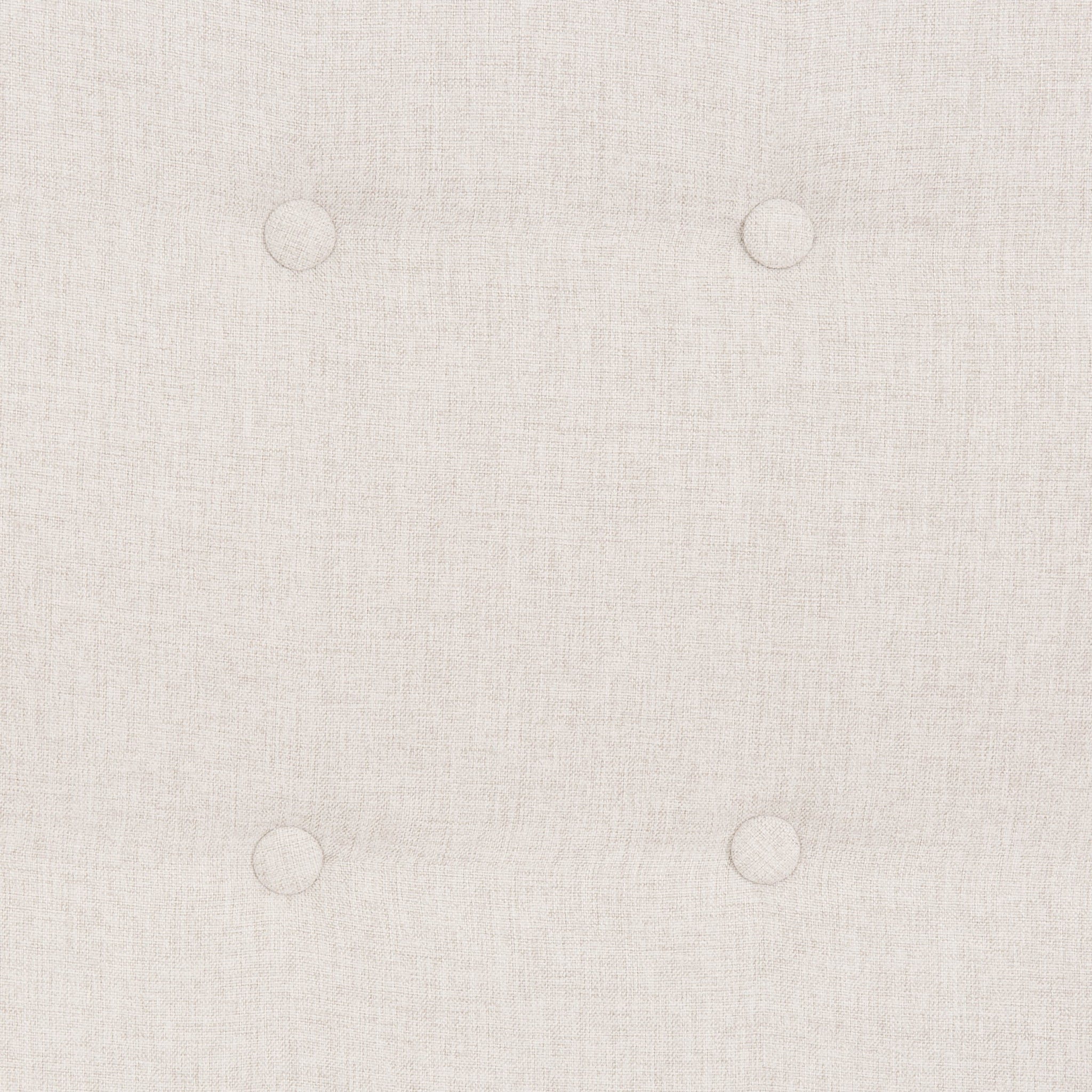 COMFORTABLE PADDING: A beautifully tufted backrest and thick seat padding adds a comfortable element to its soft linen upholstered construction
