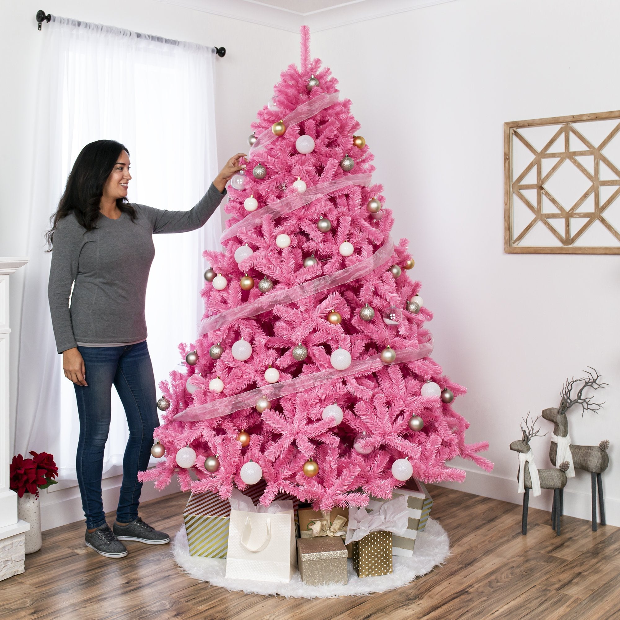 Pink Artificial Fir Christmas Tree w/ Foldable Stand