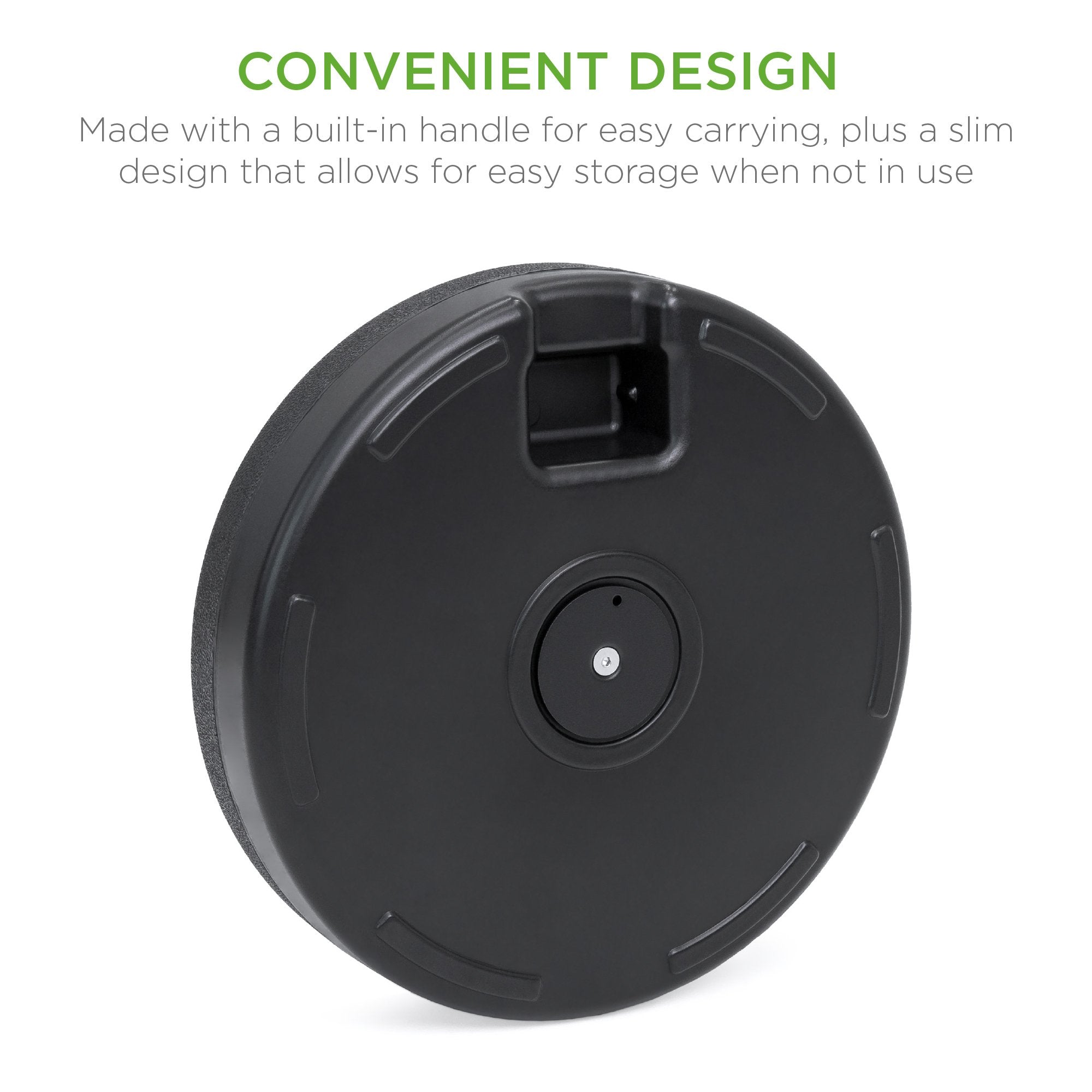 WATER OR SAND FILLING: Base can be weighed down with up to 50 pounds of water or sand, or empty it out for a lightweight stand that can be taken anywhere