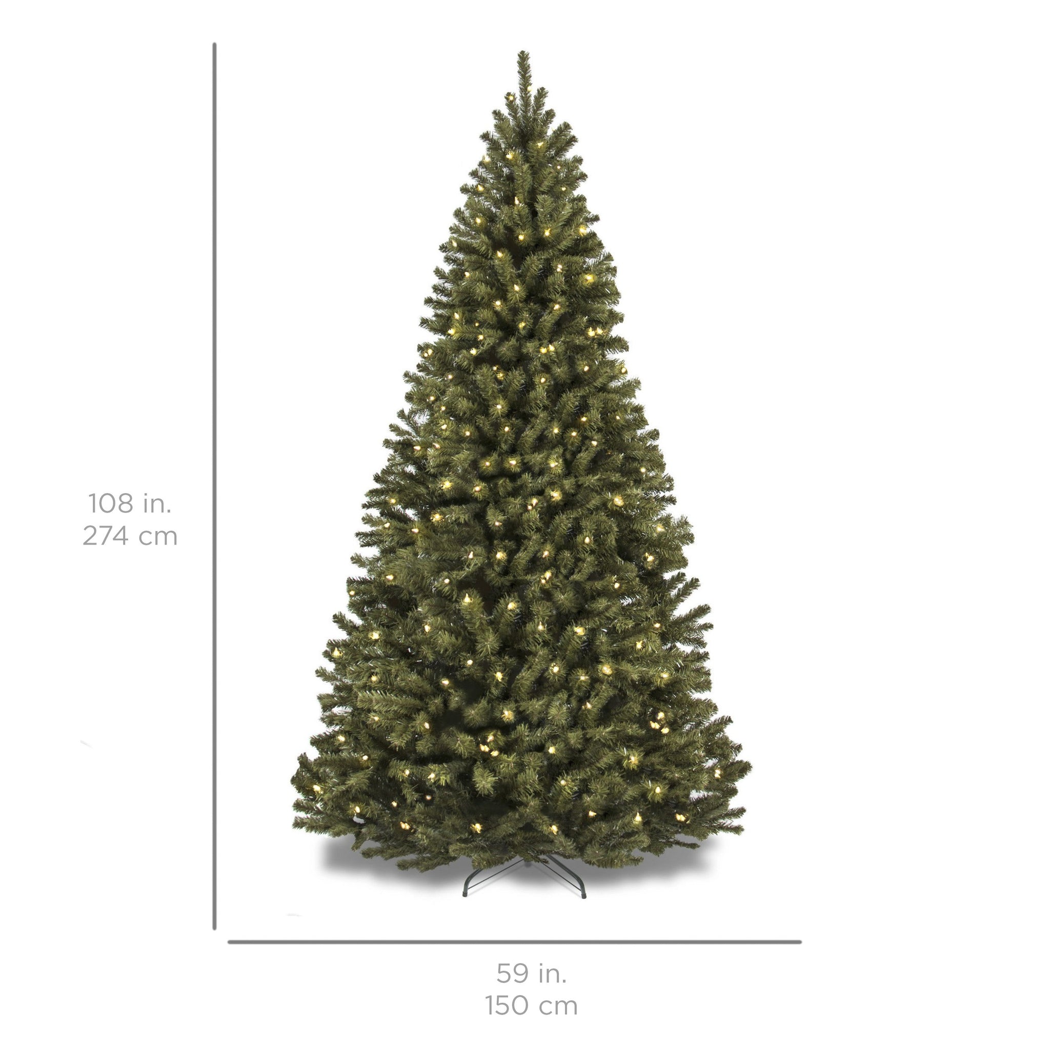 HASSLE-FREE, PRE-STRUNG LIGHTS: Incandescent, warm white lights bring a festive glow to your home; bulbs are replaceable; Number of Lights (4.5ft/6ft/7.5ft/9ft): 200 / 250 / 550 / 900