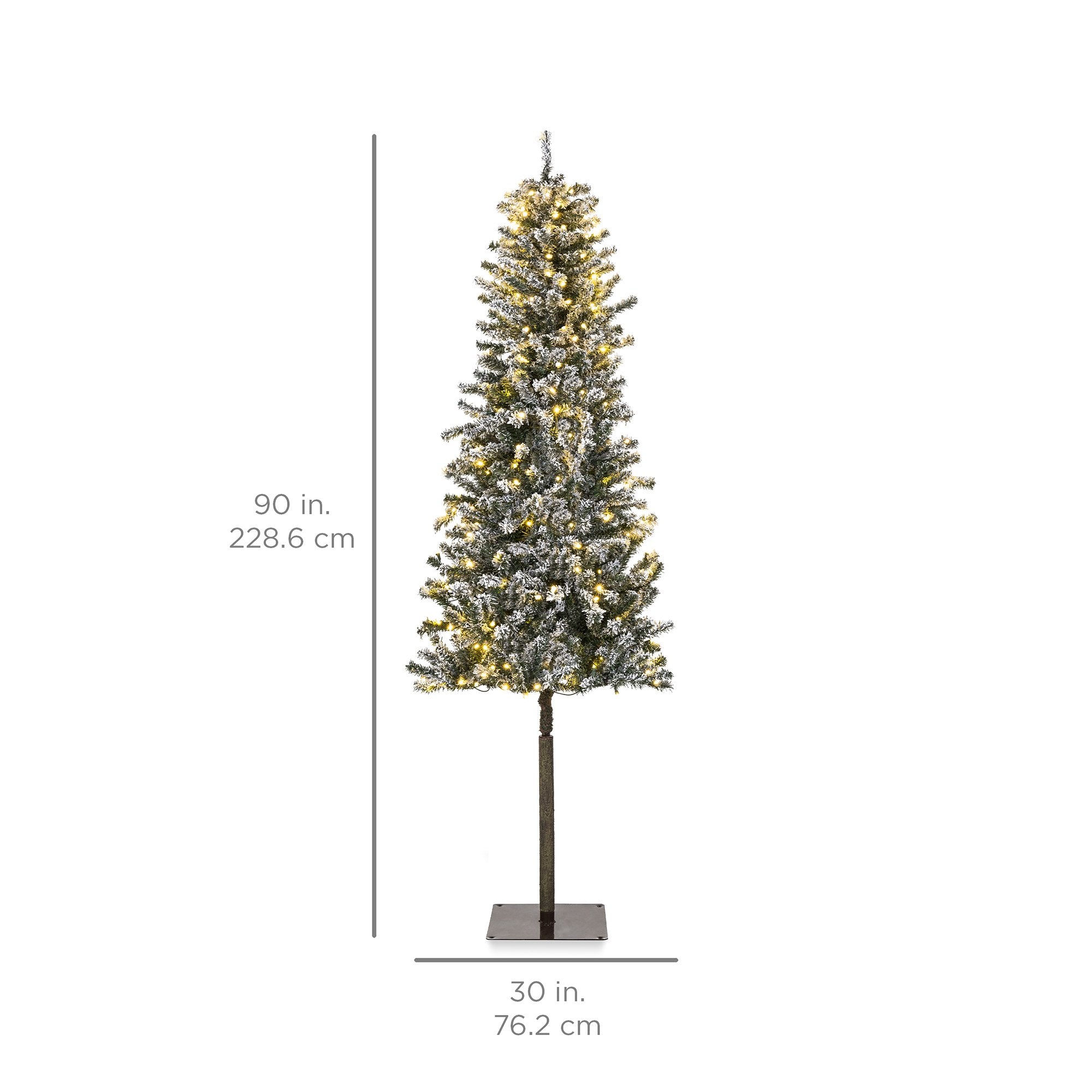 Pre-Lit Snow Flocked Alpine Slim Pencil Christmas Tree w/ LED Lights, Stand