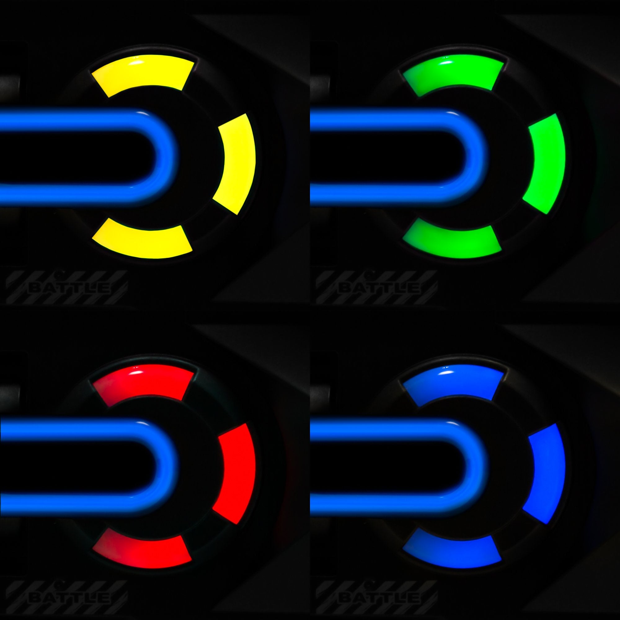 • 4 BLASTER SETTINGS: Choose from different blaster modes that you can change during battle, each able to take out a different number of life points!