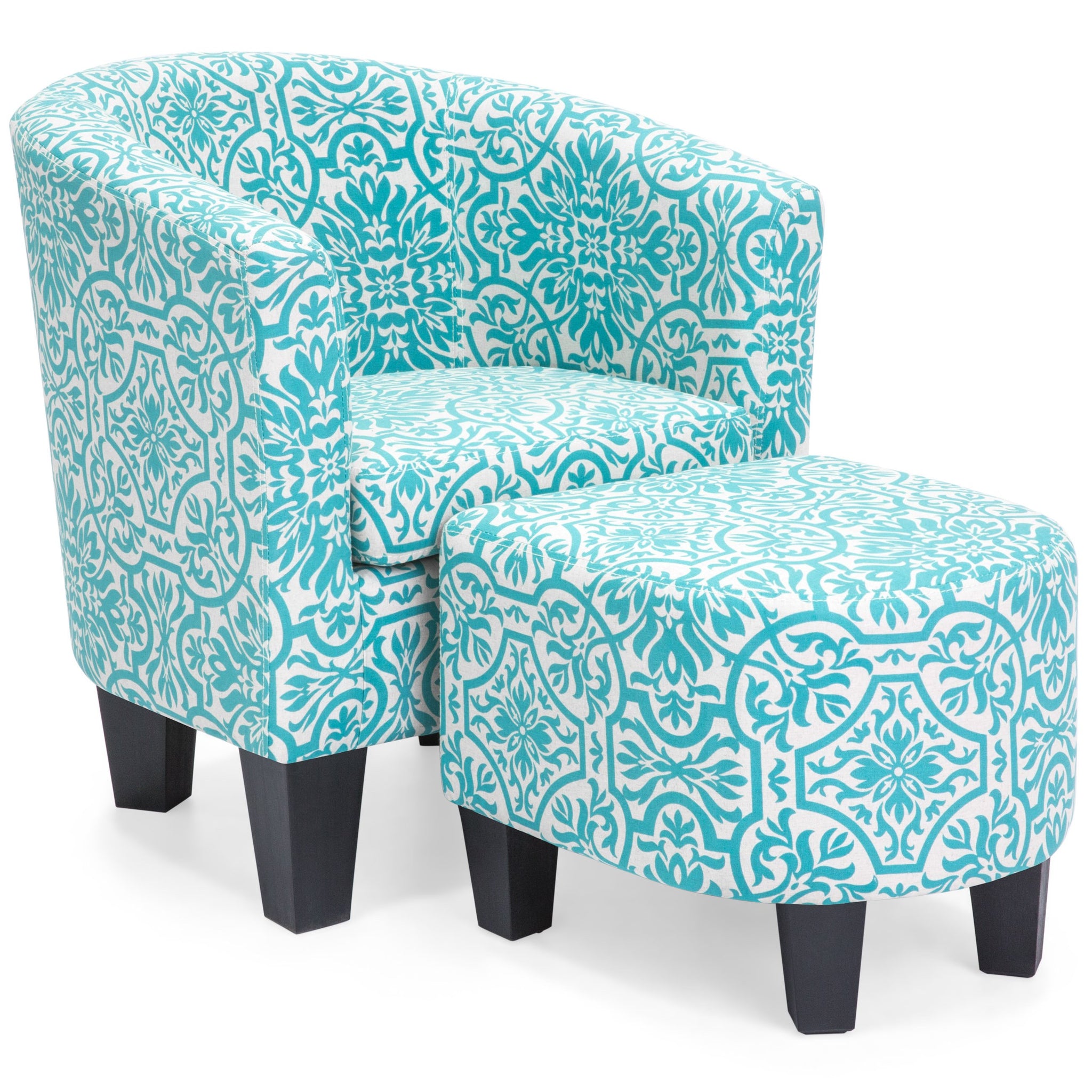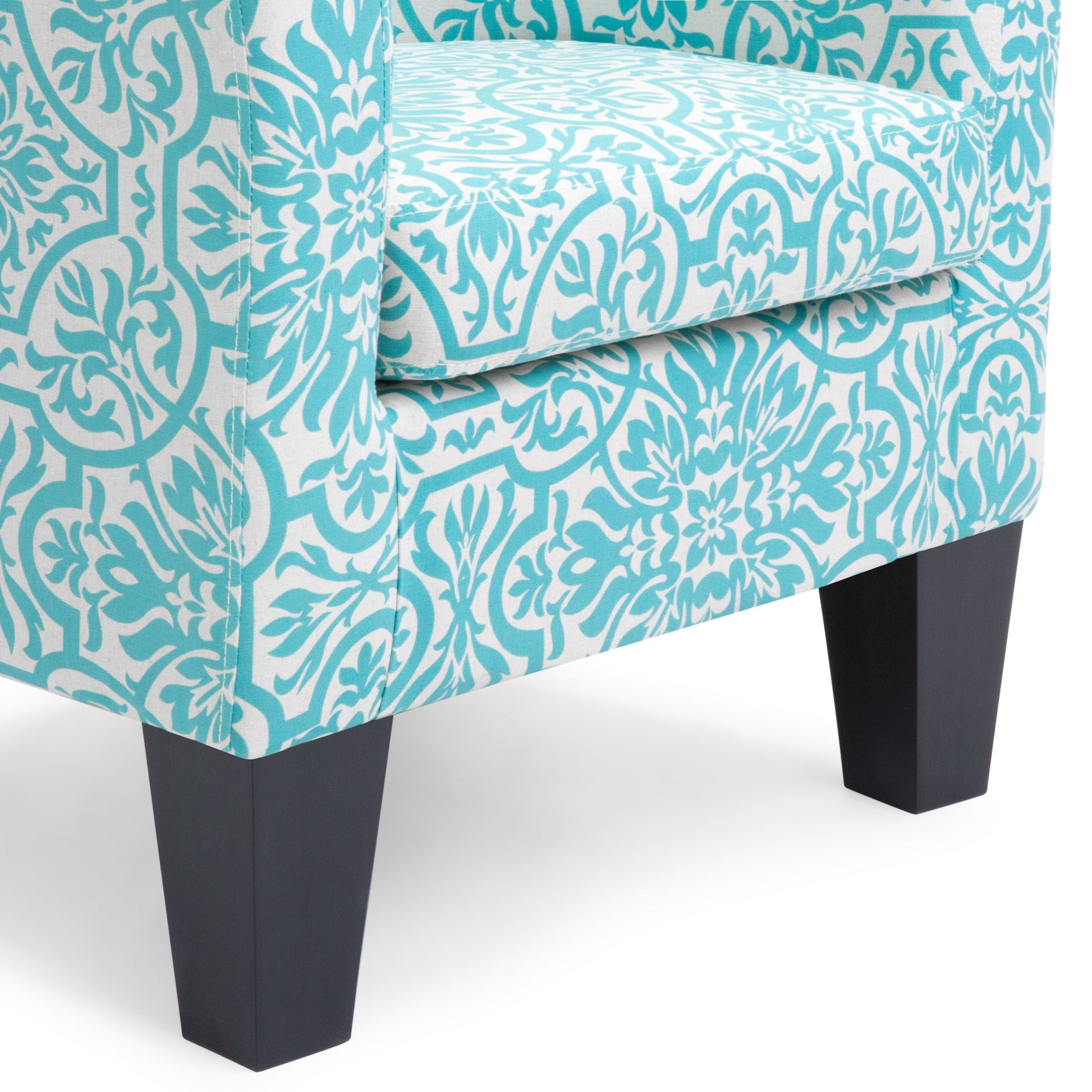 CAPTIVATING PATTERNS: Charming accent chair brings life to your living space with eye-catching details against a delicate upholstery; Script (White) or Floral (Blue)